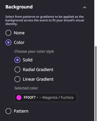 Design just got easier. Add solid color backgrounds to your event landing pages for a cleaner, bolder visual appearance that reflects your brand’s identity.
