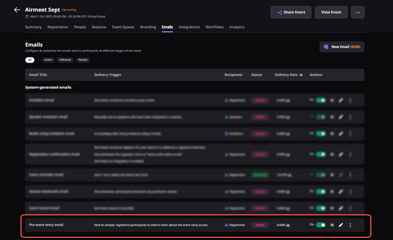 Session bookmark reminder emails were not being delivered to attendees after re-enabling emails—this has now been fixed. - Fixed unwanted email triggers for recurring events.