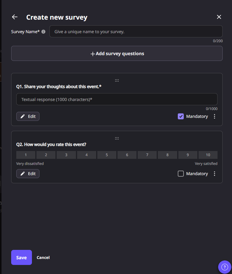 Step 2: Click on “+ Add Event Survey” and provide a name for your survey.
