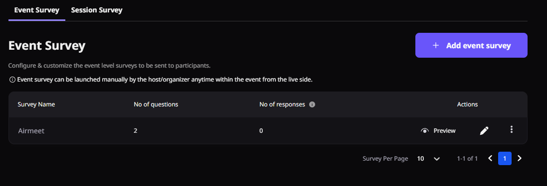 2. Only one event survey can be active at a time