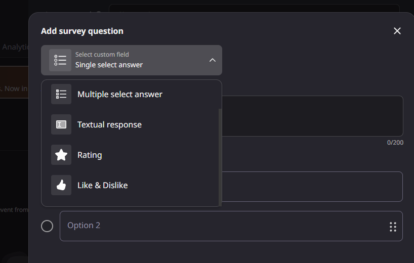 Single Select: Add a question and define selectable options