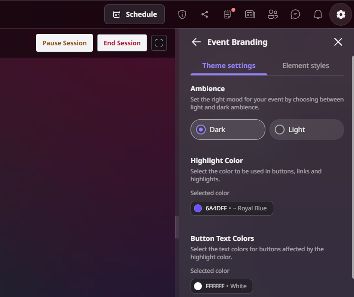 Go to Settings → Event Branding → Highlighted Color