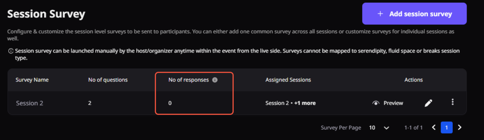 Session surveys are not supported for Serendipity, Fluid Space, or Break sessions.